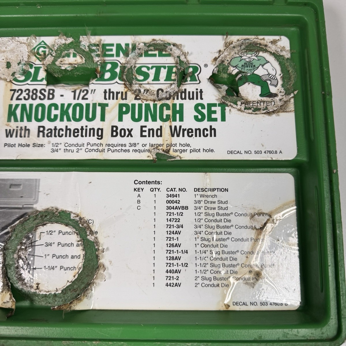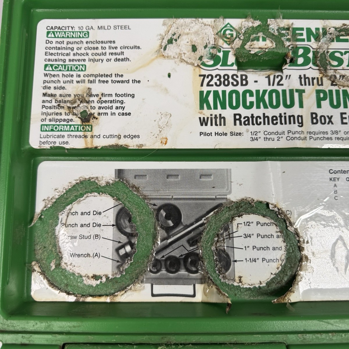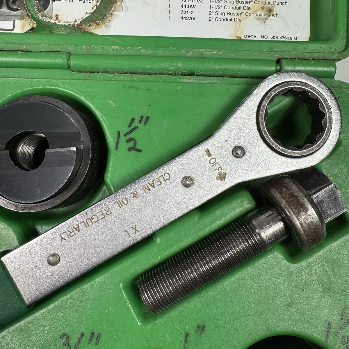 Greenlee 7238SB Slug-Buster Knockout Kit W/ Ratchet Wrench Punch Set 1/2" - 2"