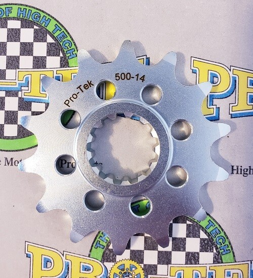 Pro-tek front sprockets are also completely CNC machined to exact tolerances from 4140 nickel-chromoly steel resulting in a quality product. None of the Pro-tek front sprockets are gear hobbed, but are lightened with drilled holes to save on rotating mass. Every lb of rotating mass equates to a 4 lb weight reduction. The sprockets are then case hardened to Rc 58-60 and finished with a zinc plating for added durability and protection from corrosion. Made in the USA, normally retail for $29.95. This is for a 520 Pitch front sprocket 14, 15 or 16 tooth.