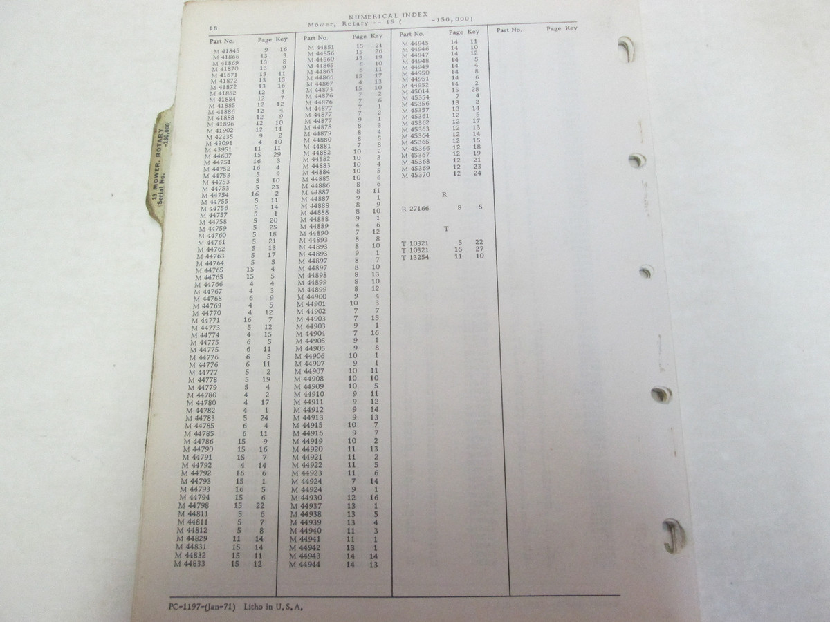 John Deere 19 Rotary Mower Parts Catalog Manual PC-1197 Loose Leaf Used Guide