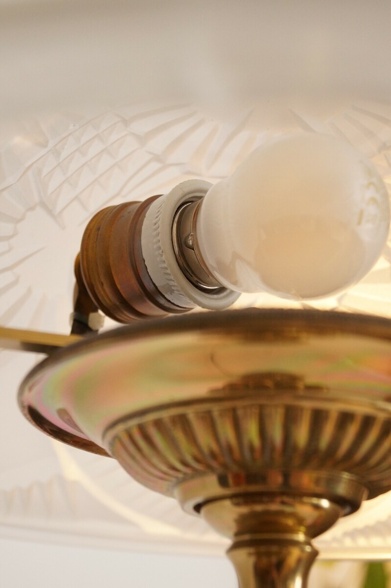 Guaranteed unique piece of Art Nouveau brass lamp Berlin antique glass England (No.