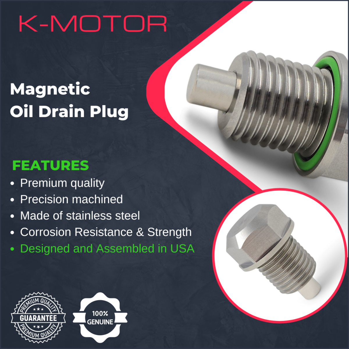 K-Motor Performance oil drain plugs are made of high quality stainless steel. They are precision machined and assembled with the highest quality materials. Designed to keep harmful metal shavings out of the engine.