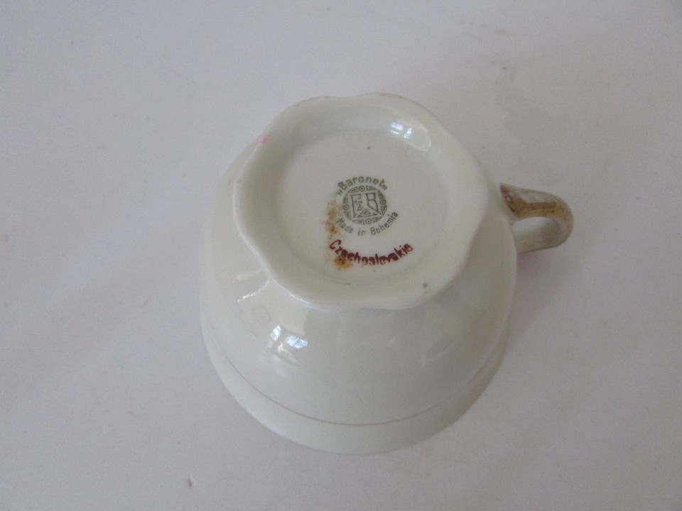 BARONET TEACUP MADE IN BOHEMIA CZECHOSLOVAKIA PINK & VIOLET FLORALS