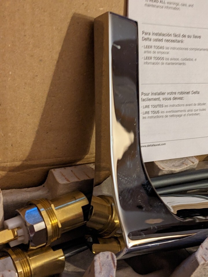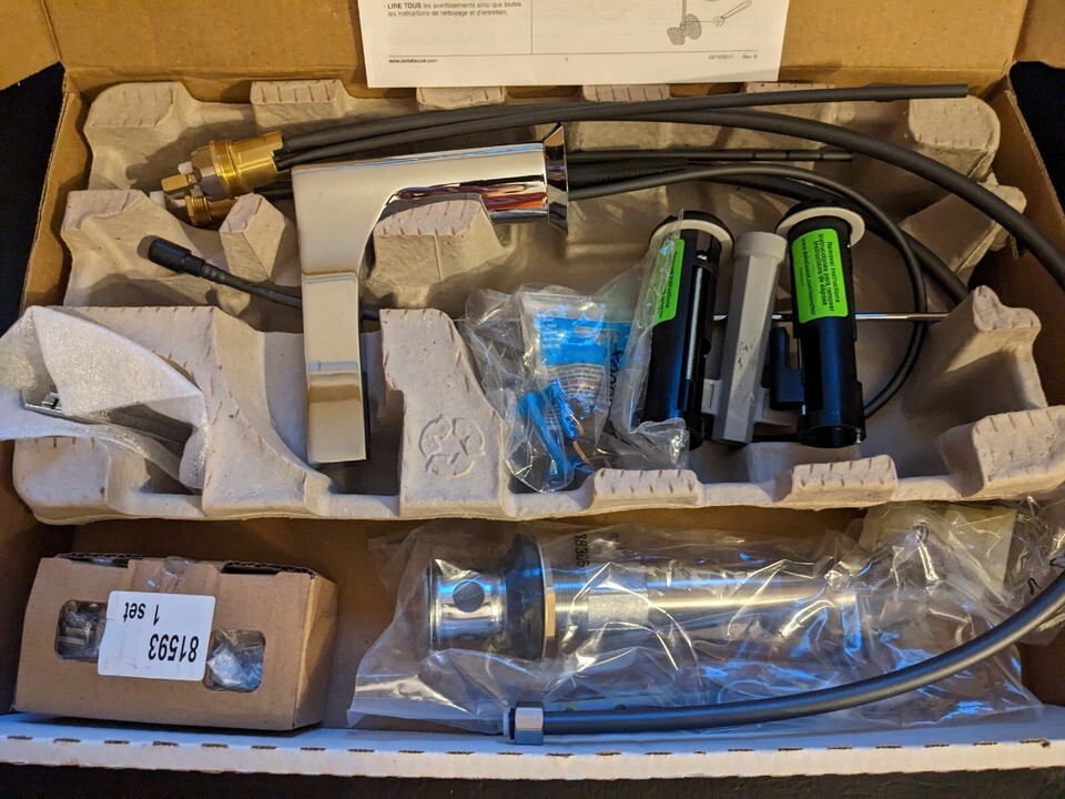 Up for sale is a new in open box Delta 3574-MDU-DST Zura 8 in Widespread Bathroom Lavatory Faucet Chrome Box.
