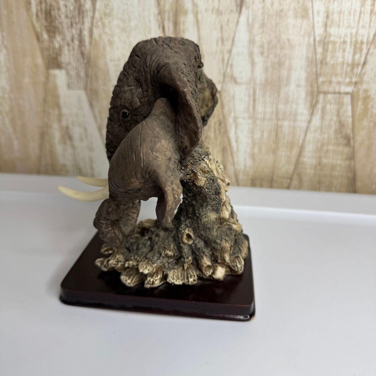 Vintage Mother Baby Elephant Figurine Resin Bust Base Decor Sculpture