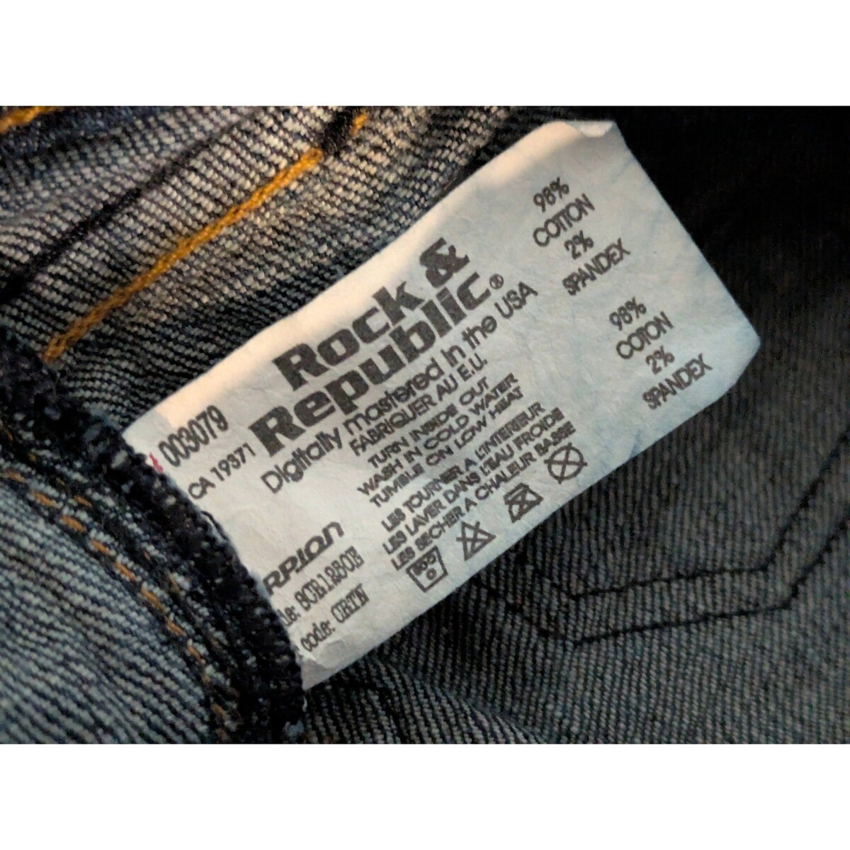 Abbraccia la rockstar che e in te con questi accattivanti jeans a zampa Rock Republic. Realizzati in una miscela premium, questi jeans offrono una vestibilita lusinghiera che accentua la tua silhouette con un tocco elegante. Il dettaglio della tasca invecchiata aggiunge un tocco di raffinatezza tagliente, mentre la classica patta con bottone garantisce una chiusura sicura e senza tempo. Perfetti per incarnare l'icona della moda che e in te, questi jeans sono ideali per una giornata informale, un concerto o una serata in citta. ? Cucitura interna: 31 pollici ? Aumento: 8 pollici ? Apertura della gamba: 10 pollici Lavaggio in tessuto: medio Girovita: 27 pollici Accenti: bottone, pieghe Caratteristiche: effetto invecchiato, tasche Tipo di tessuto: denim Materiale: cotone, spandex, misto cot
