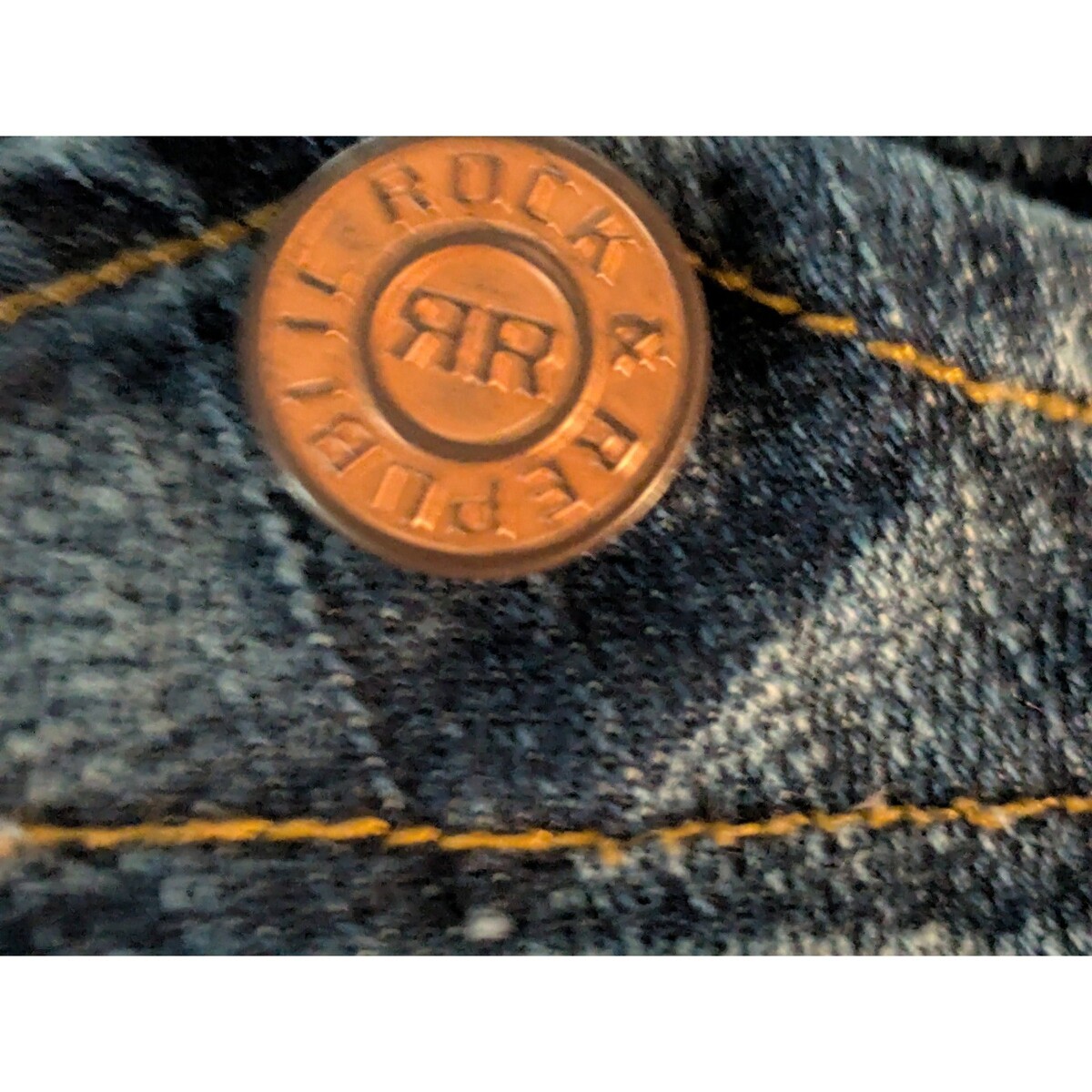 Rock Repubblica Donna a Zampa Jeans Blu Denim Bottoni Fly Sdrucito Tasche Taglia