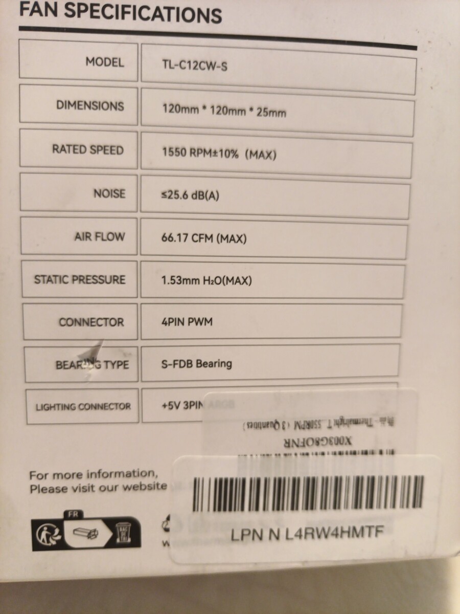 Thermalright 120mm High Performance Fan ~TL-C12CW-S ~ Aura Sync ~ White ~ 3-Pack