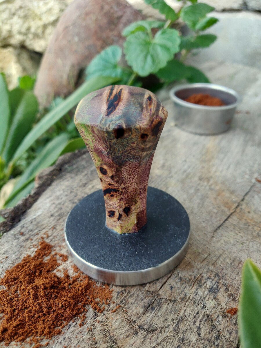 Coffee tamper, 58.5mm, Multicolored stabilized poplar wood, Stainless steel tamp