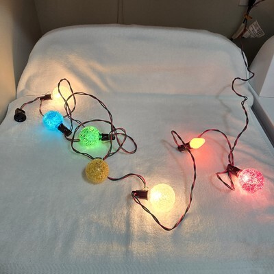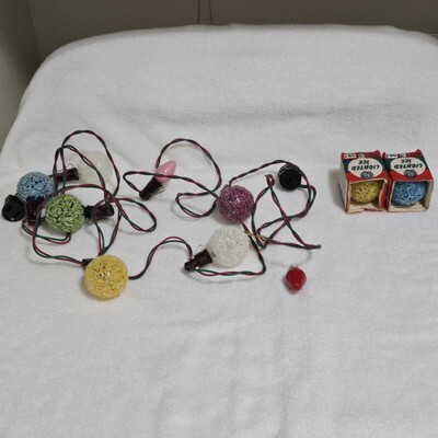 Vintage Christmas GE 8 Lighted Ice Snowball Light Bulbs & Noma Light Strand READ
