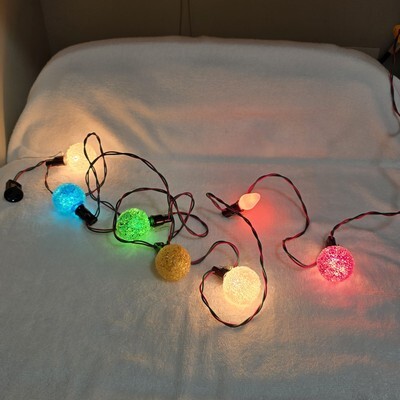 Vintage Christmas GE 8 Lighted Ice Snowball Light Bulbs Noma Light Strand *READ*