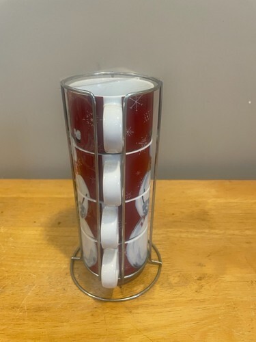 Each mug holds a generous amount of liquid and features a comfortable handle for easy gripping. The set includes four mugs and a sturdy rack for display purposes. This Mug Set is an ideal addition to your kitchen and makes a great gift for family and friends during the festive season.