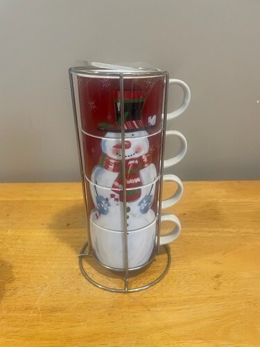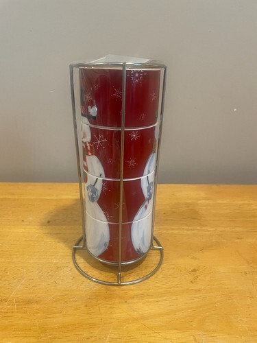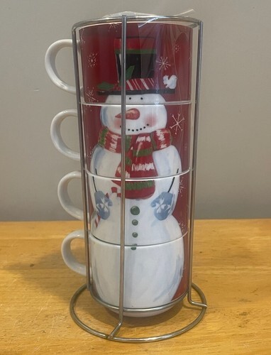 Pier 1 Imports Stackable Snowman Christmas Mug Set with Rack