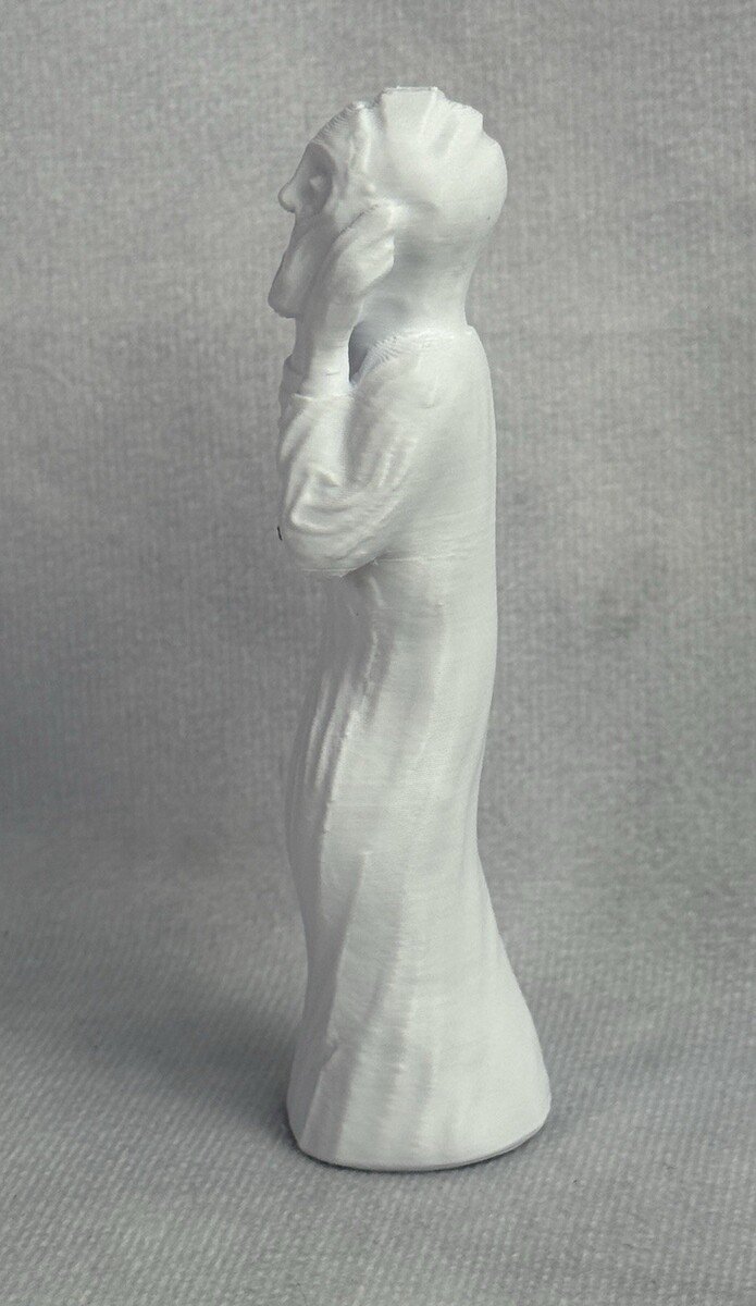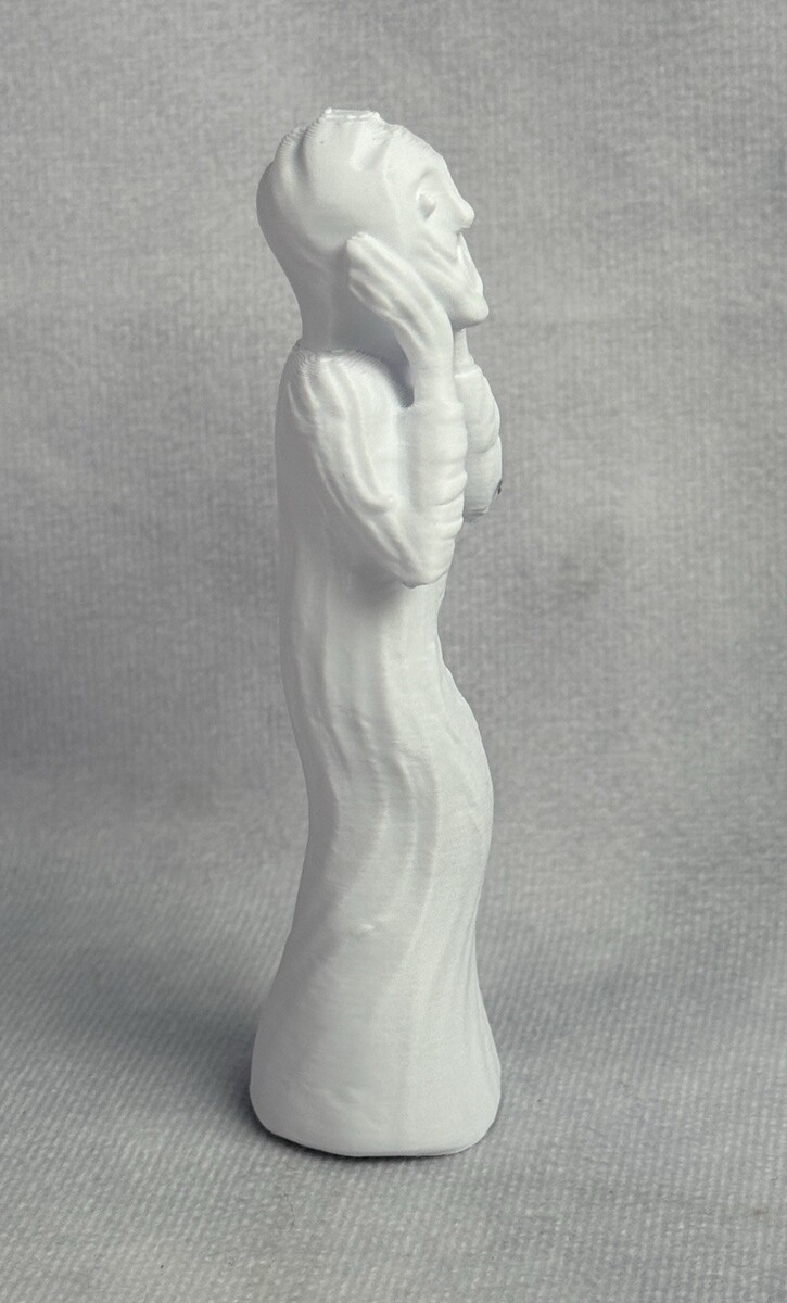 Scream figure, raw 3-D print, ready for refinishing and painting, or can be displayed as is, as pictured, measurements are in the photos minor lines, marks, and rough spots, condition as pictured, no cancellations or returns, ships within three business days.