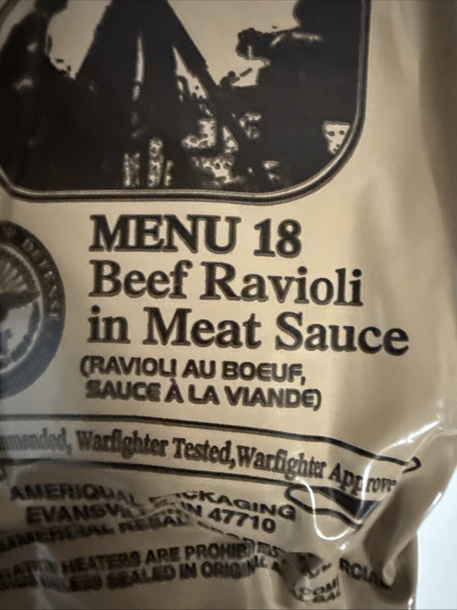 The MRE Individual Menu Single Meal 01/2024 Inspected MENU 18 by SOPAKCO is a ready-to-eat meal with a shelf life of 5 years. It features a delicious course of beef ravioli in meat sauce, making it a convenient and tasty option for camping or other outdoor activities. This single meal is a great addition to any camping cooking supplies, providing a nutritious option for sports enthusiasts and adventure seekers alike. Made in the United States, this MRE ensures quality and variety in your culinary choices while on the go.