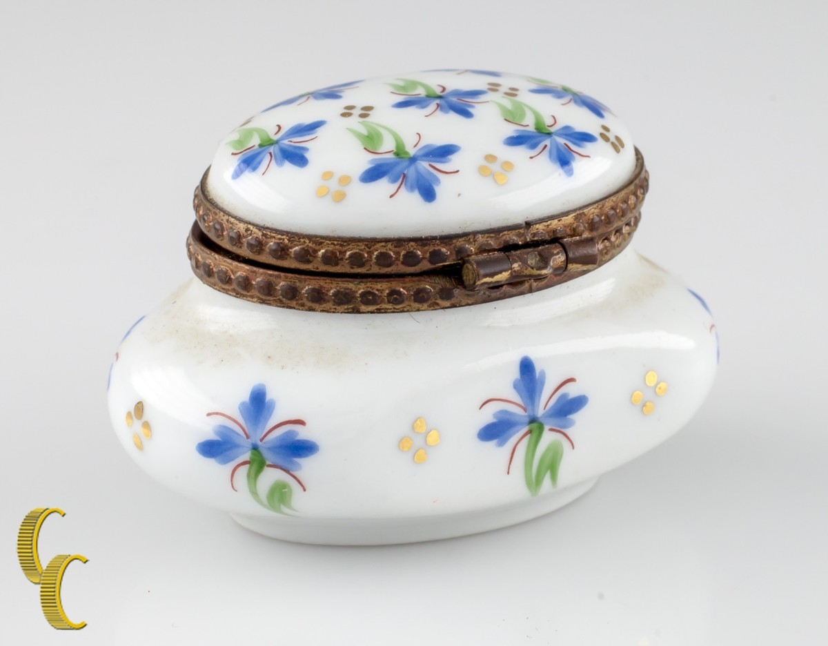 Small Limoges Peint Main Porcelain Honey Pot Ink Well Trinket Box