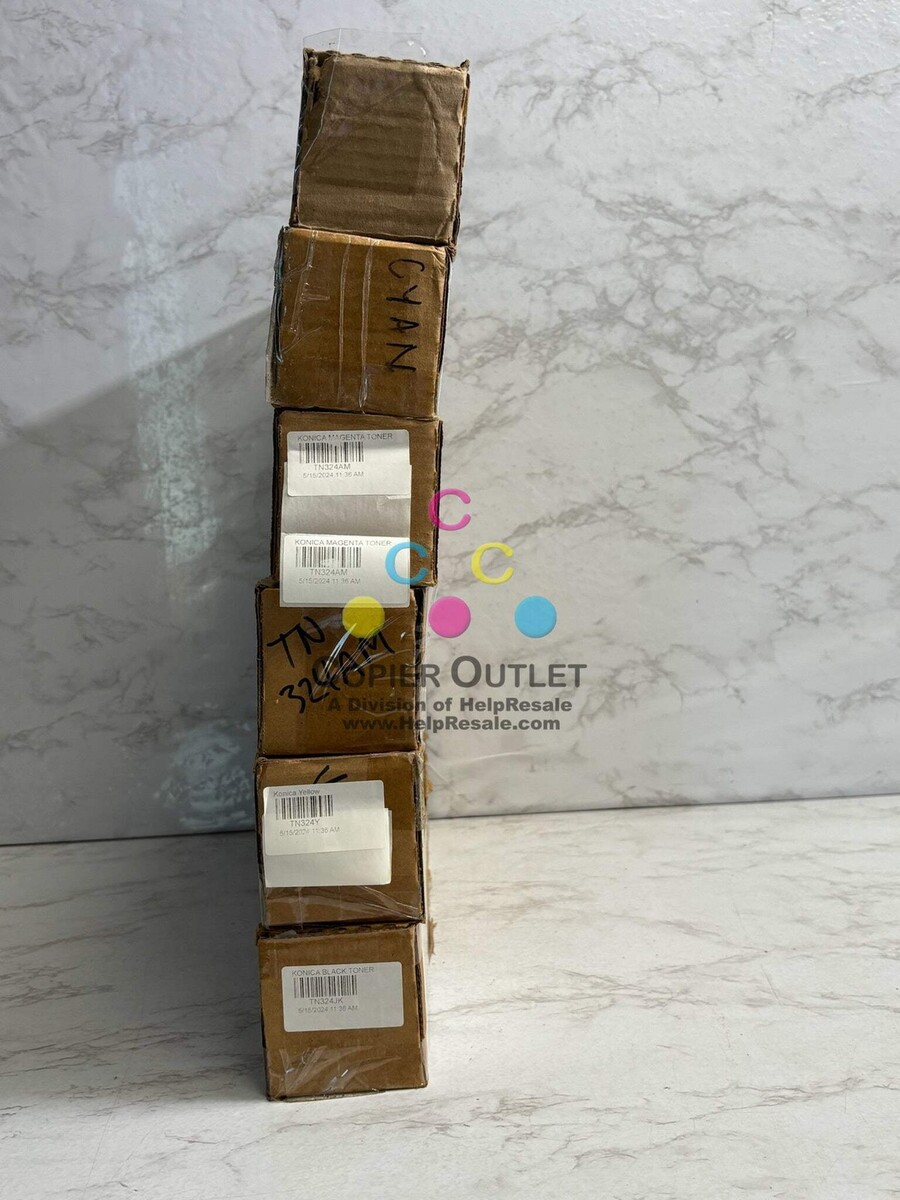 6 Cosmetic Genuine Konica BH C258,C308,C368 CCMMYK Toners TN324 (Plain Boxes)