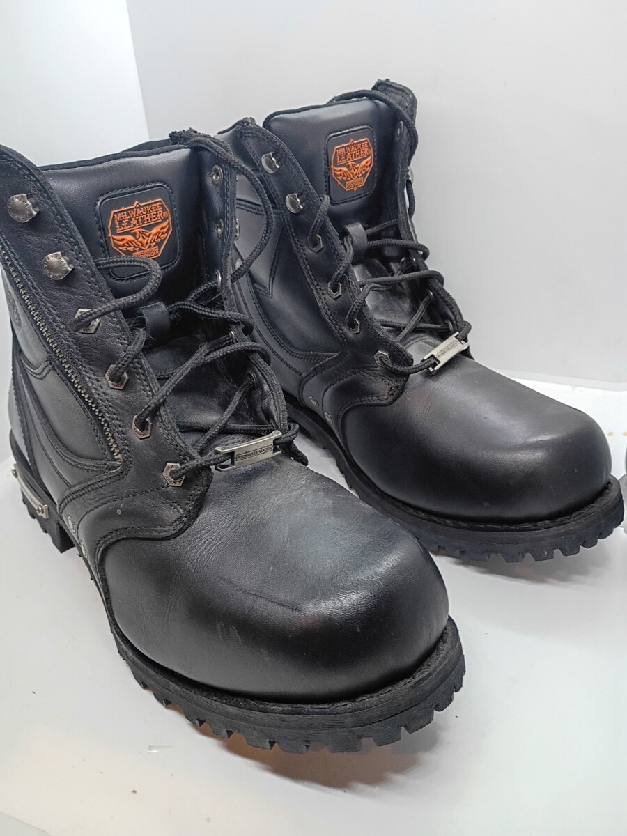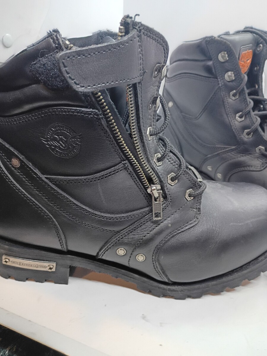 Milwaukee Leather MBM9050 Black Side Zip Boots Motorcycle 11EEE. MISSING INSOLES. SUPERB USED CONDITION. Some scratches and scuffs.
