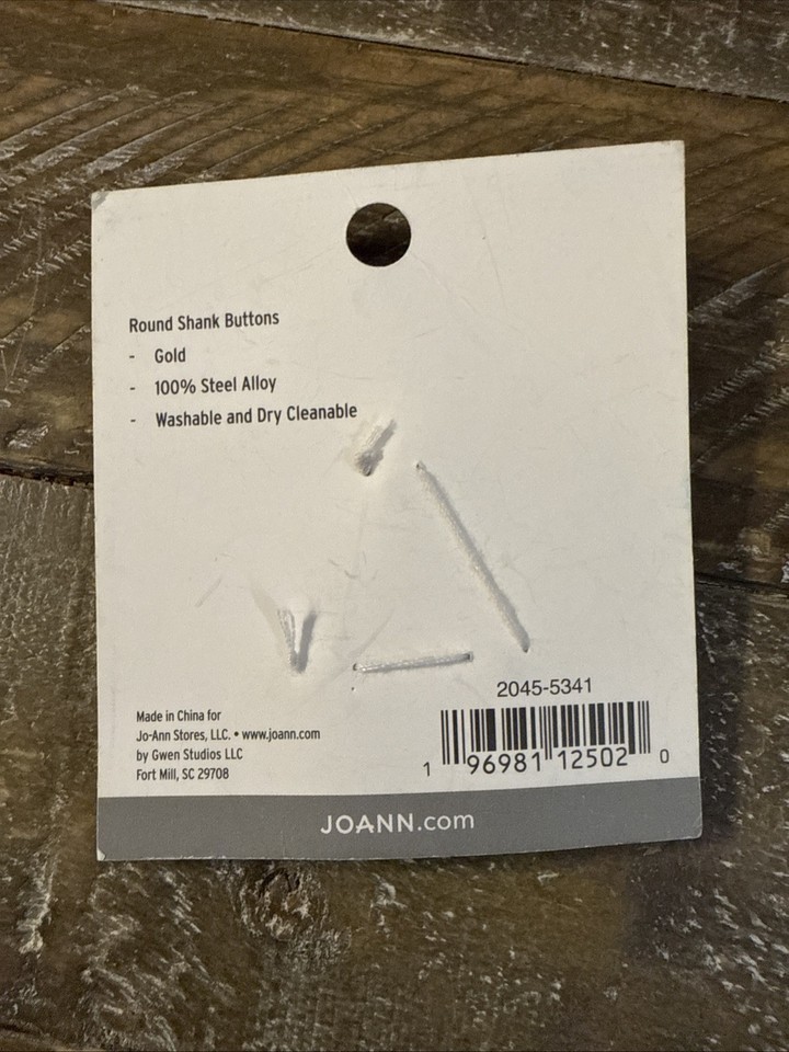 The product is a set of three 3/4" shank buttons in a gold color, made of plastic. These buttons are designed for sewing and crafting projects, specifically for adding closures and connectors to various items. The shank design allows for easy attachment to fabric or other materials, and the gold color adds a touch of elegance to any project. Perfect for adding a unique and stylish detail to your creations, these buttons are a versatile and practical addition to your crafting supplies.