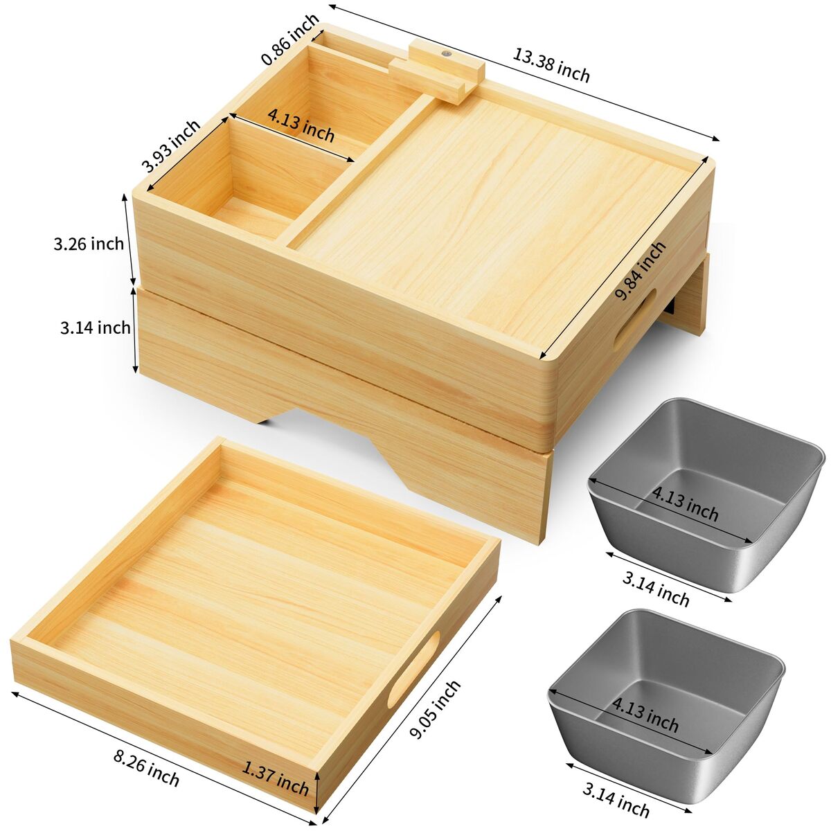 ?Natural Pine Wood Construction?Overall dimensions: 13.4'' x 9.8'' x 3.2''. The sofa cup holder tray is made of natural pine wood, which is sturdy and durability. We retain the unique original pine wood grain and color to add a rustic and natural charm to your living room.