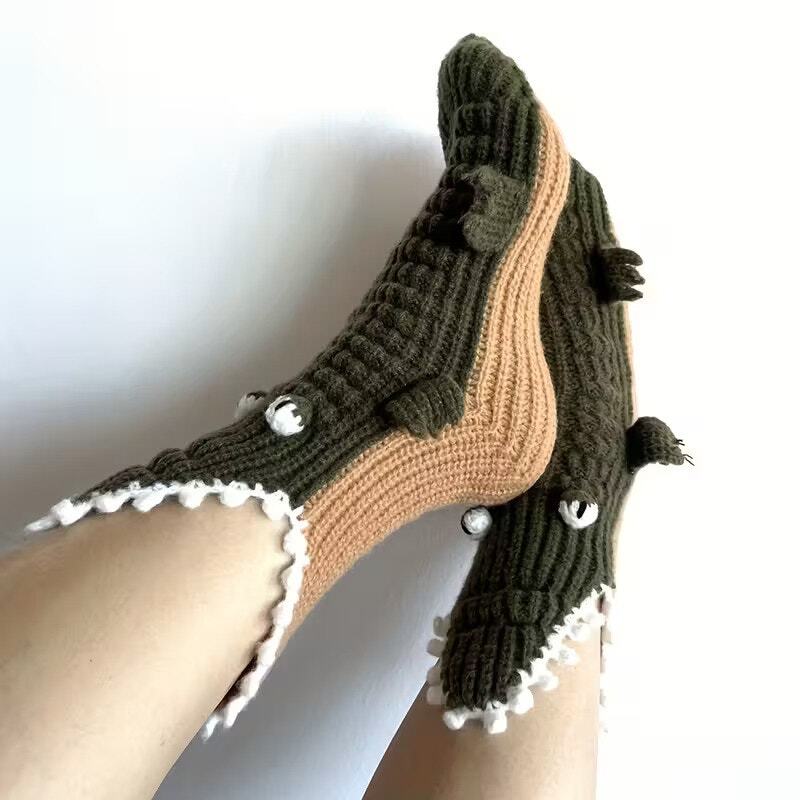 Funny Handmade Alligator Crocodile Adult Knit Socks