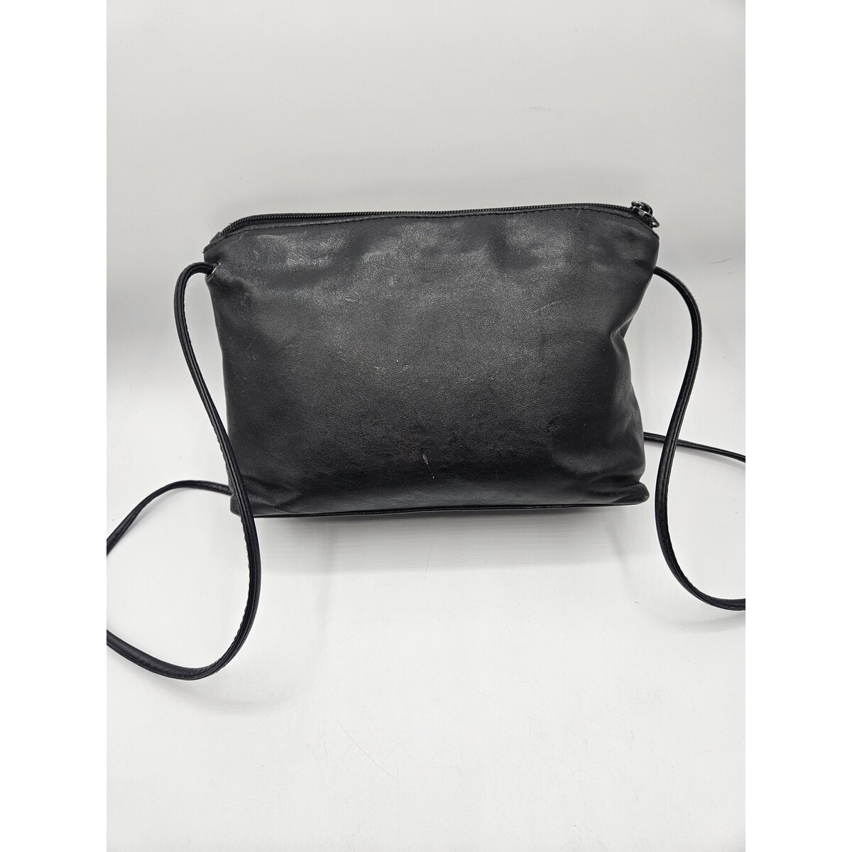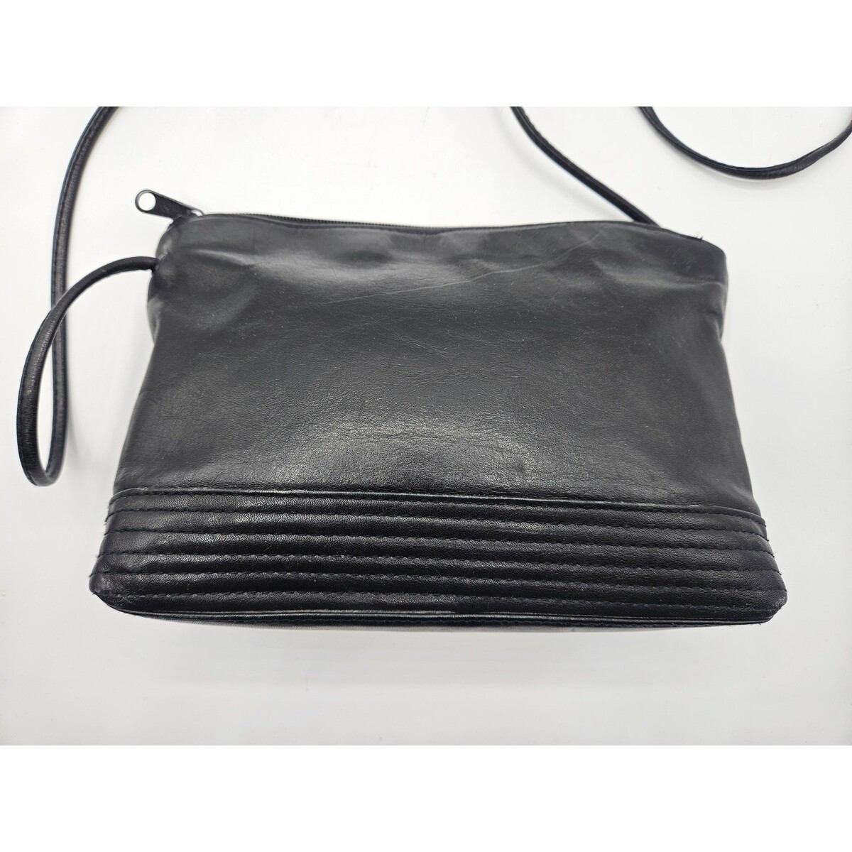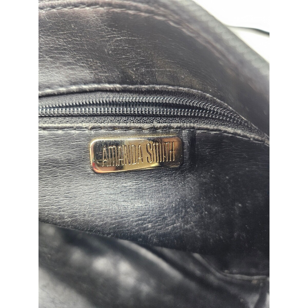Amanda Smith Women's Black Leather Handbag Shoulder Bag Small Skinny Strap