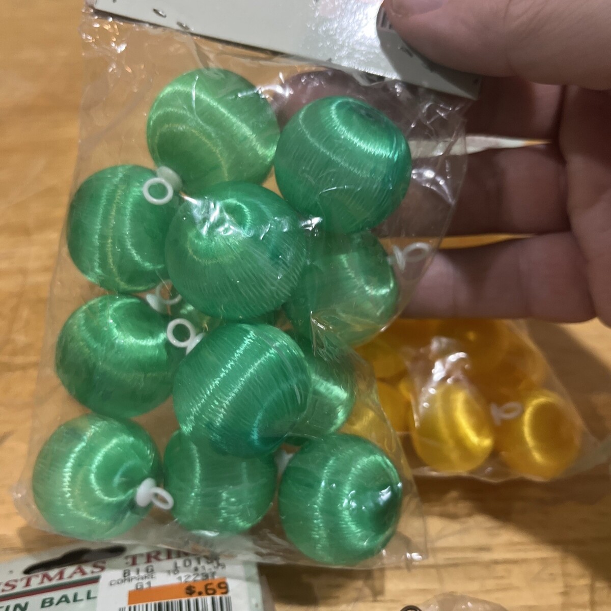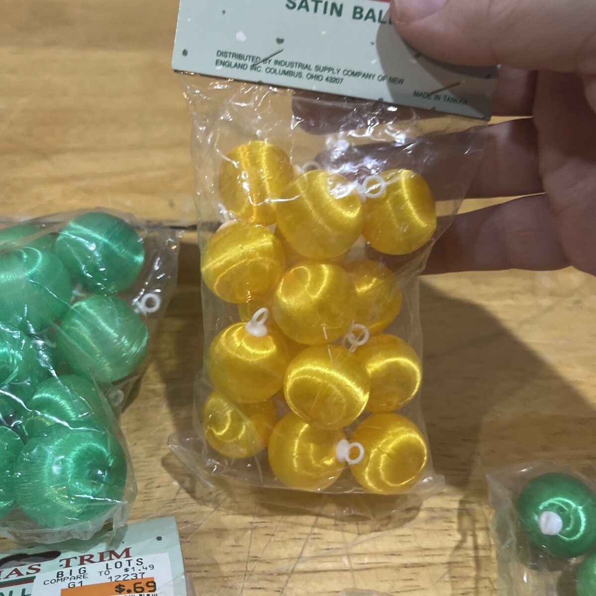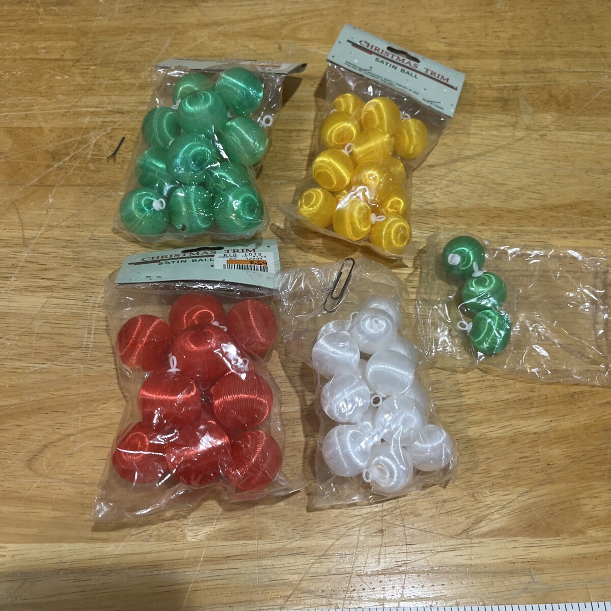 Vtg Mini Satin Christmas Ornaments 1 inch Red Yellow Green White Lot Of 50+