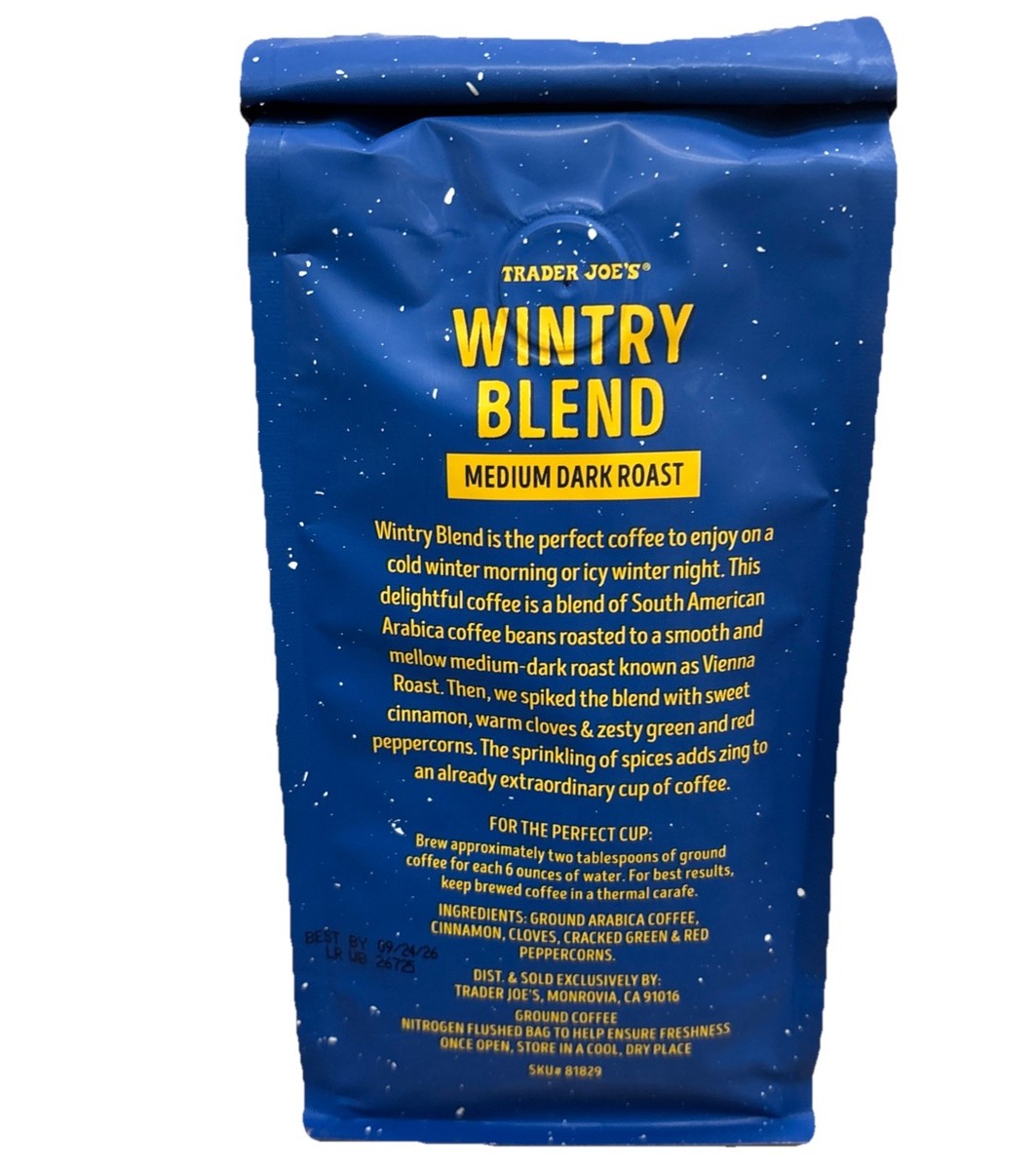 NEW TRADER JOE'S SEASONAL WINTRY BLEND MEDIUM DARK ROAST 100% ARABICA COFFEE