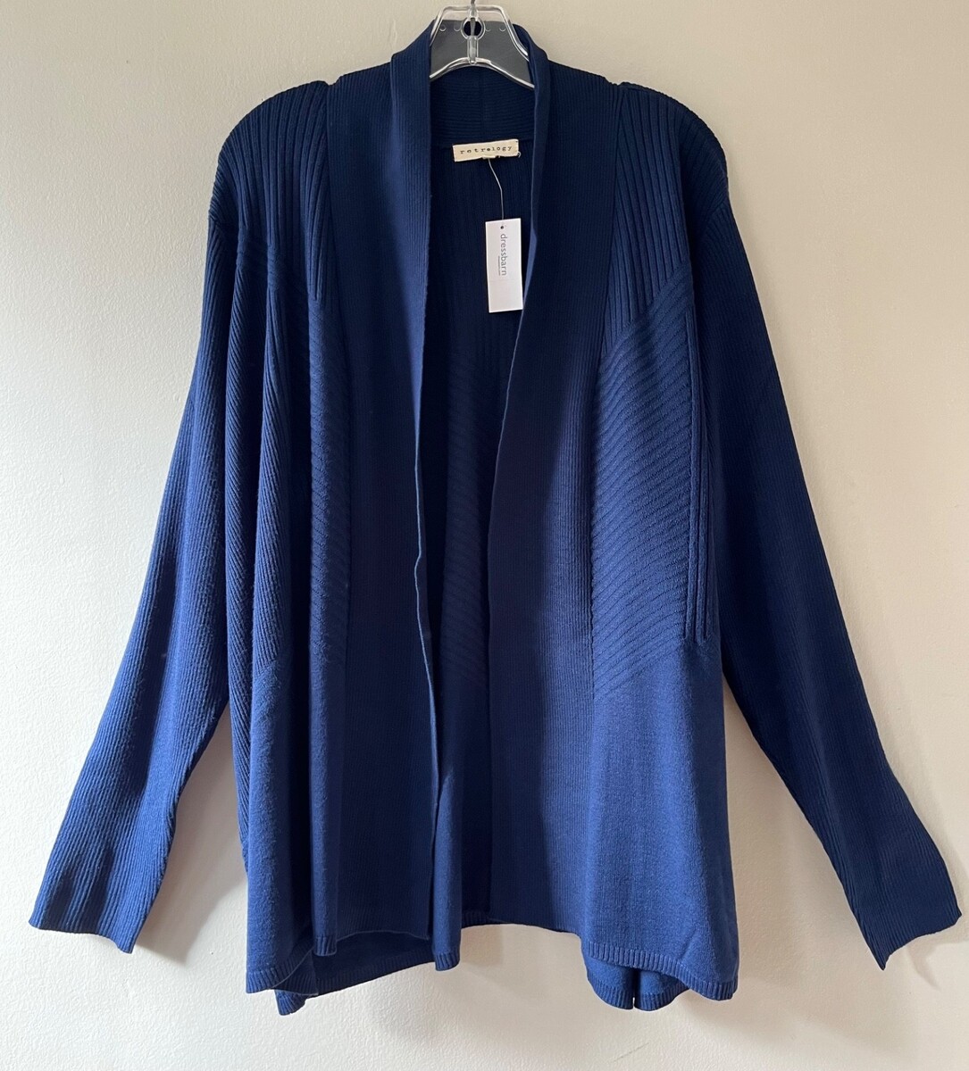 Dressbarn Sz 2X Blue Stretch Open Cardigan Sweater Long Sleeves Waterfall Neck