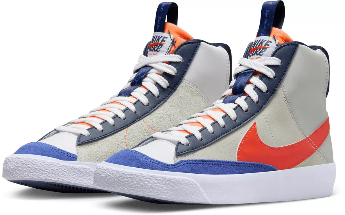Nike Blazer Mid '77 SE Kids Size 6.5Y White Silver Orange Blue FQ7413-100