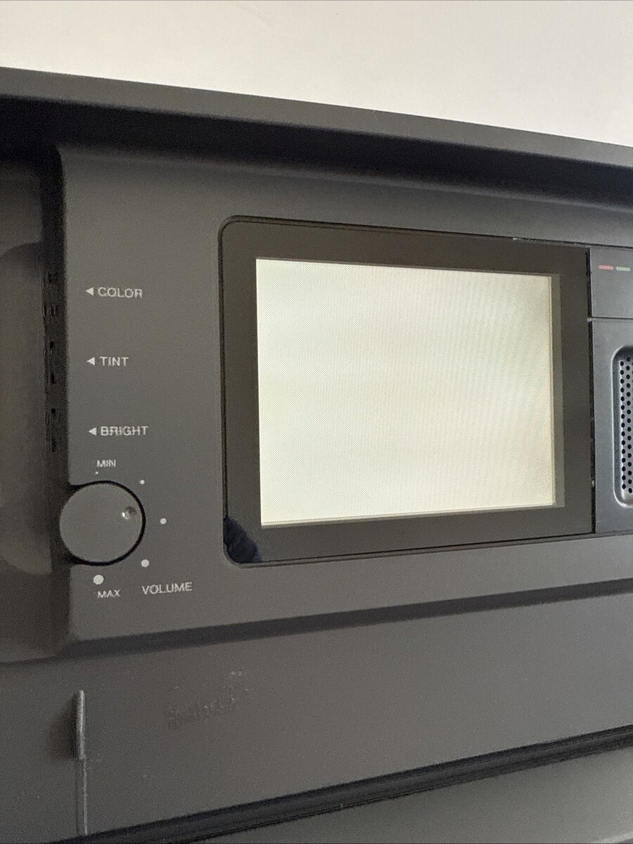 Unit turns on , screen lights up , reverse , ff , play , eject work but the screen does not play the tape unfortunately. Maybe a quick fix for someone who knows what they?re doing because it could possibly be user error . Sold as is for parts