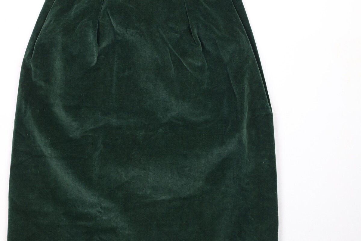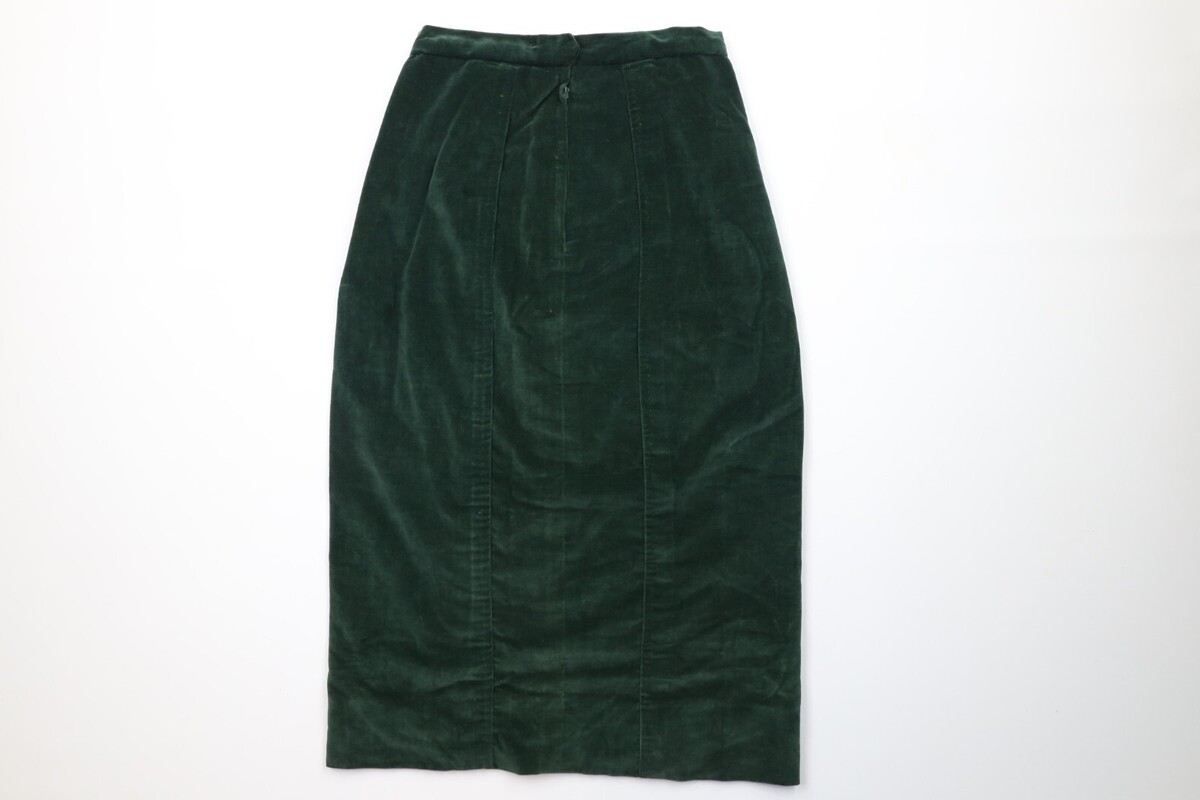 Vintage 50s 60s Streetwear Womens 25 Faded Velvet Velour Pencil Skirt Green USA