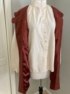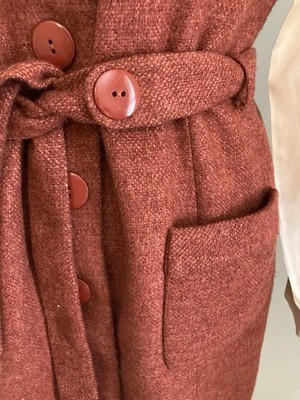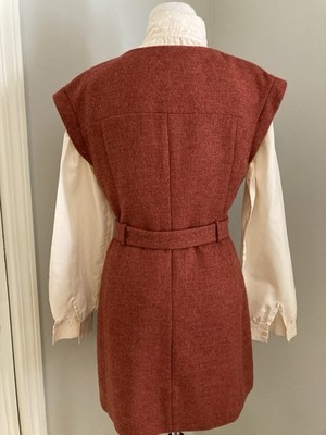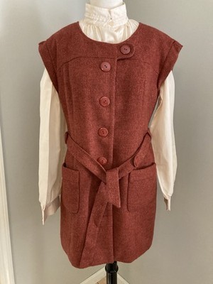 Beautiful Orange/rust tweed long buttoned tunic vest with belt, pockets, fully lined.