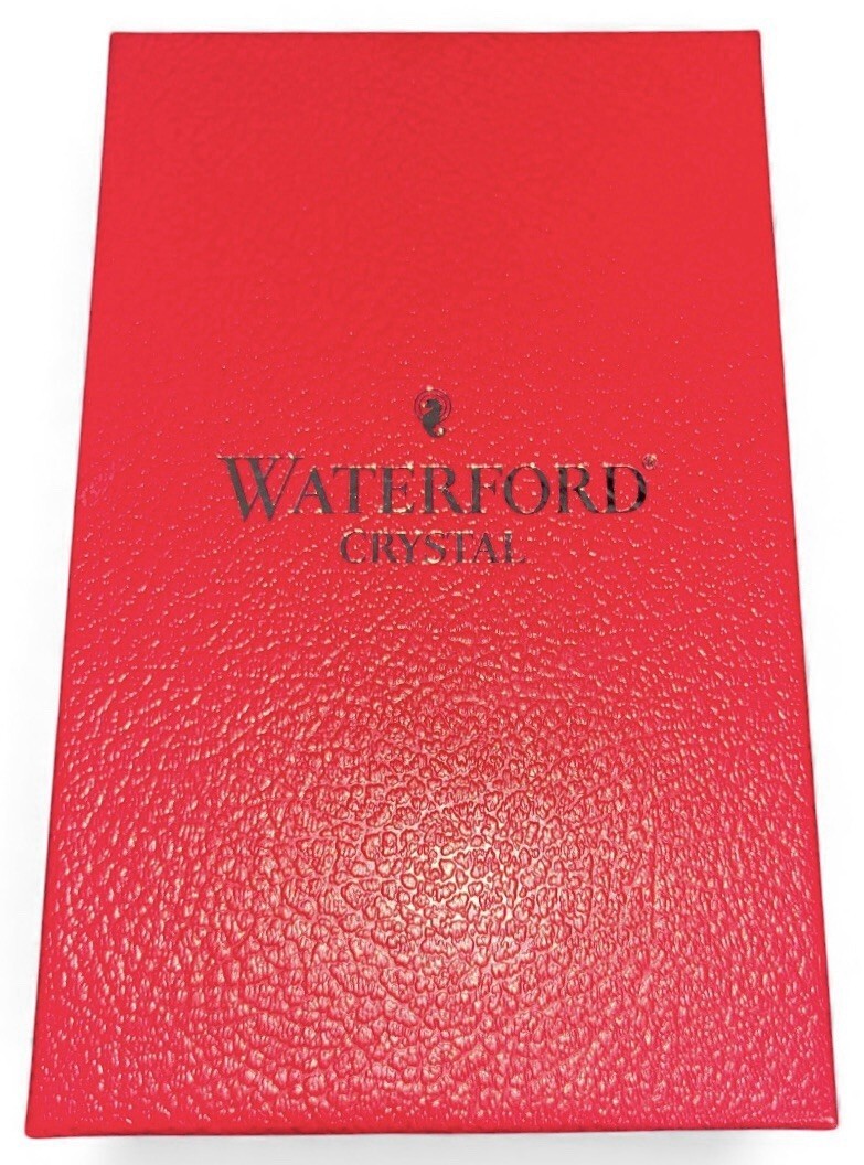 The Waterford Crystal Christmas Tree Sculpture is a vintage piece from Germany, made of clear crystal and standing at 6.5 inches tall. This contemporary style sculpture features a solid design with an etched backstamp, making it a unique and collectible item perfect for Christmas decor. Packaged in a box, this original Waterford piece captures the essence of the holiday season with its intricate Christmas tree design from the late 20th century.