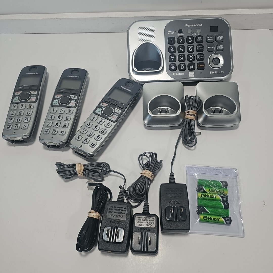 Tested and working - includes main charging base with voicemail and Bluetooth also comes with 2 extra phones and charging bases