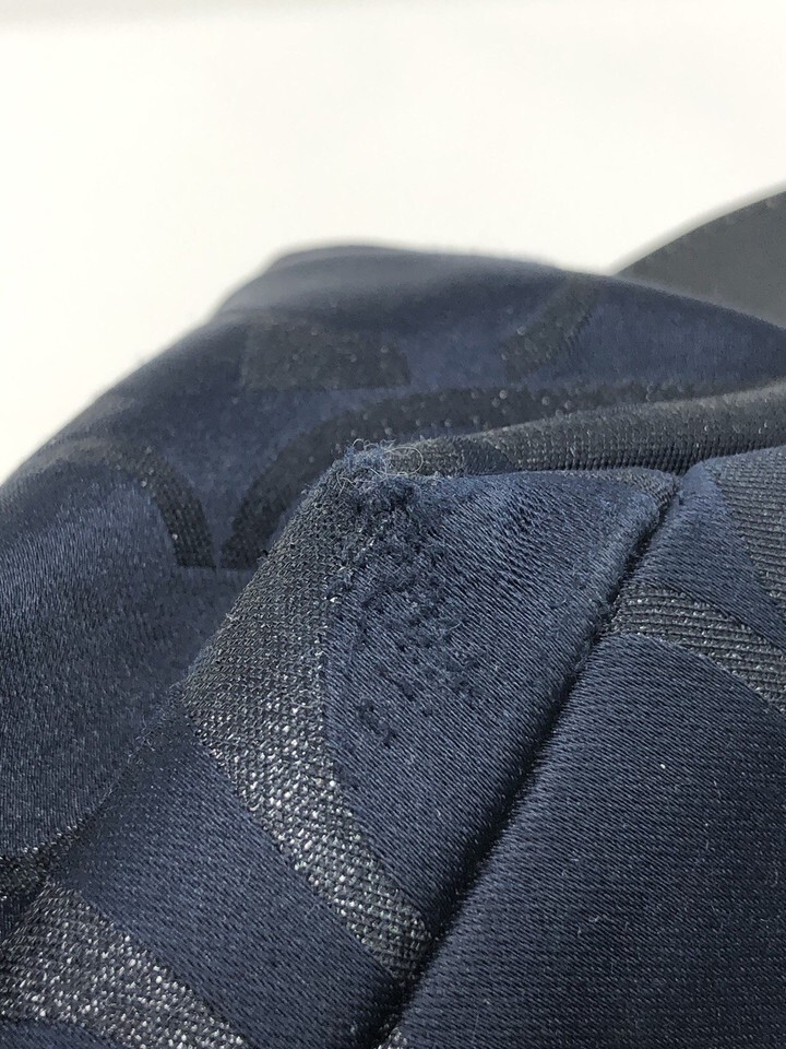 Photos are zoomed in to show wear - especially to the bottom of the bag. Some wear/ pulling noted to the sides of the bag as well