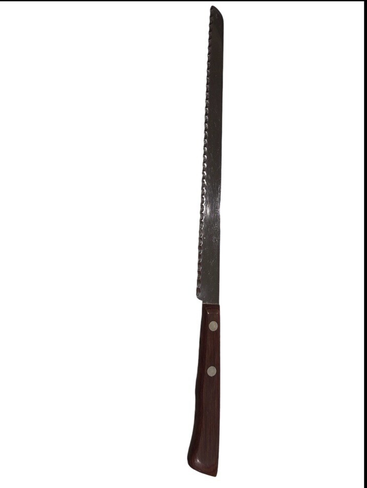 Flint Stainless Steel Waverly Edge USA 9.5 Inch Blade Wood Handle Serated