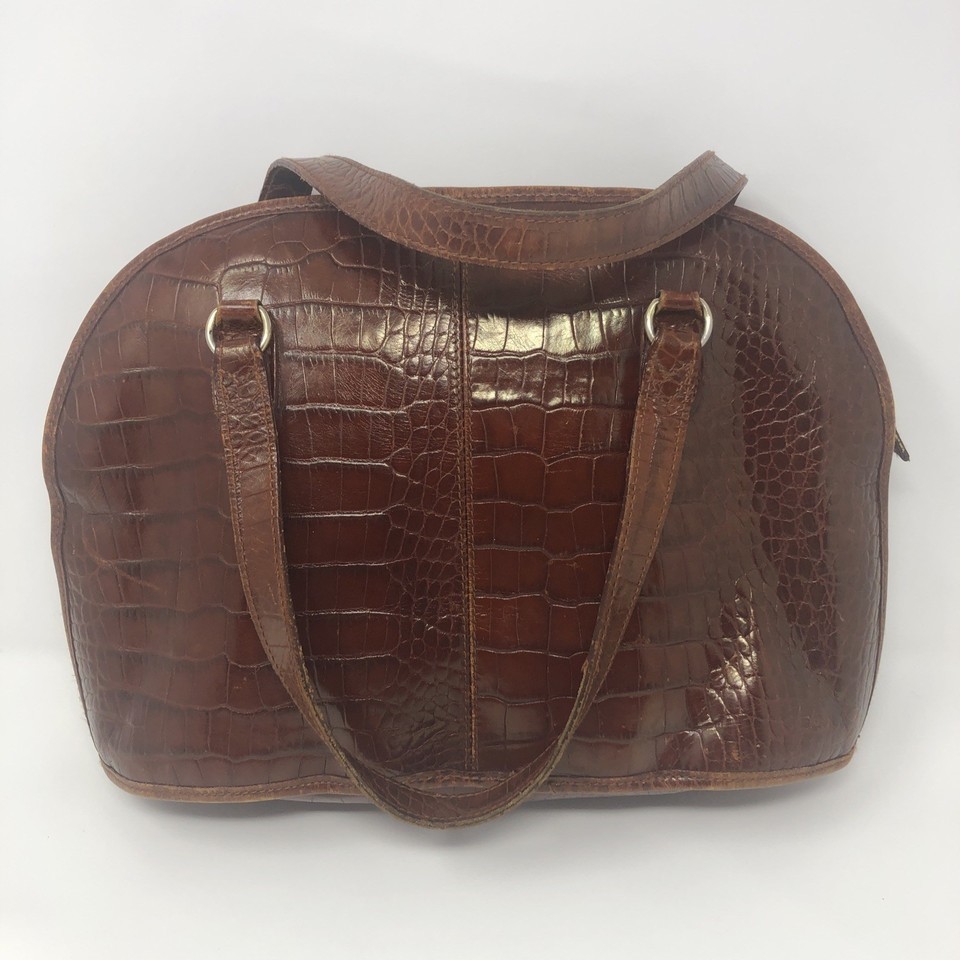 Liz Claiborne Vintage Brown Crocodile Print Leather Handbag No shoulder strap