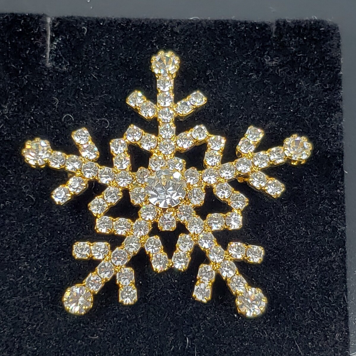Vintage Snowflake Clear Rhinestone Gold Tone and similar items