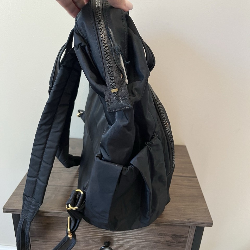 This backpack is in preowned condition. The boning that goes by the zipper has come out on the one side. Please see the one picture that shows where the metal boning is sticking out. Other than that, the backpack looks to be in great condition. It?s still zips up perfectly fine.