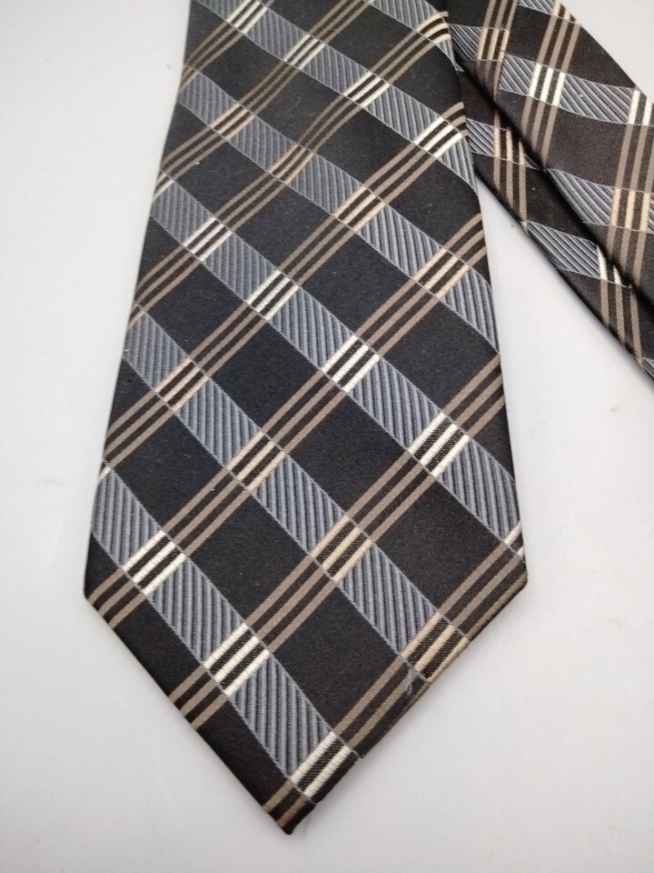 Vintage Michael Kors Tie 100% Silk Necktie Black Brown Gray Argyle Diamond Work
