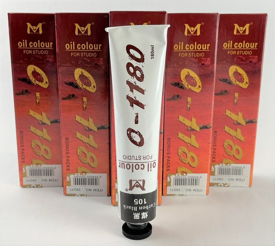 5 Pack Artist Quality Oil Paints Carbon Black 180ml Tube Professional Oil Paint