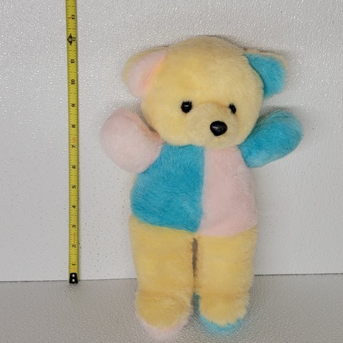 Vintage Dan Dee Pastel Color-Block Yellow Blue Pink Teddy Bear Plush 12"