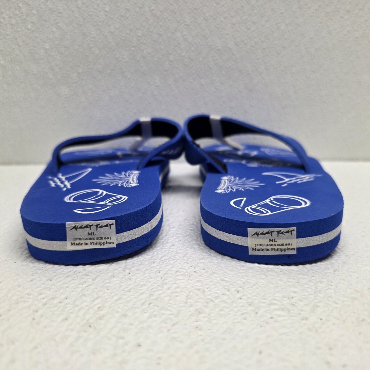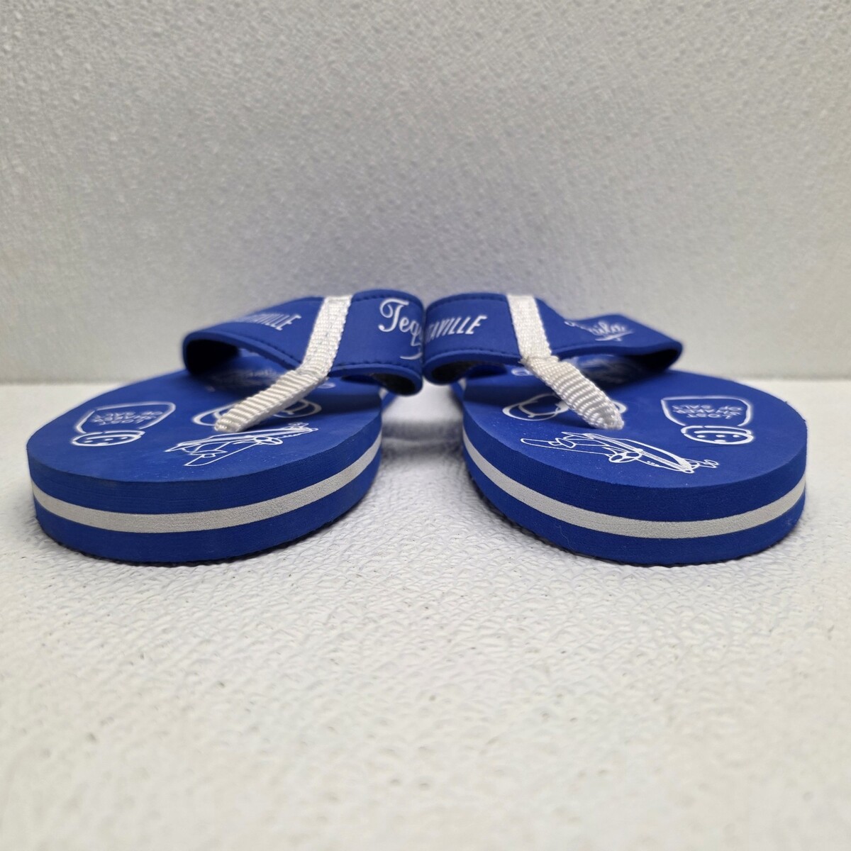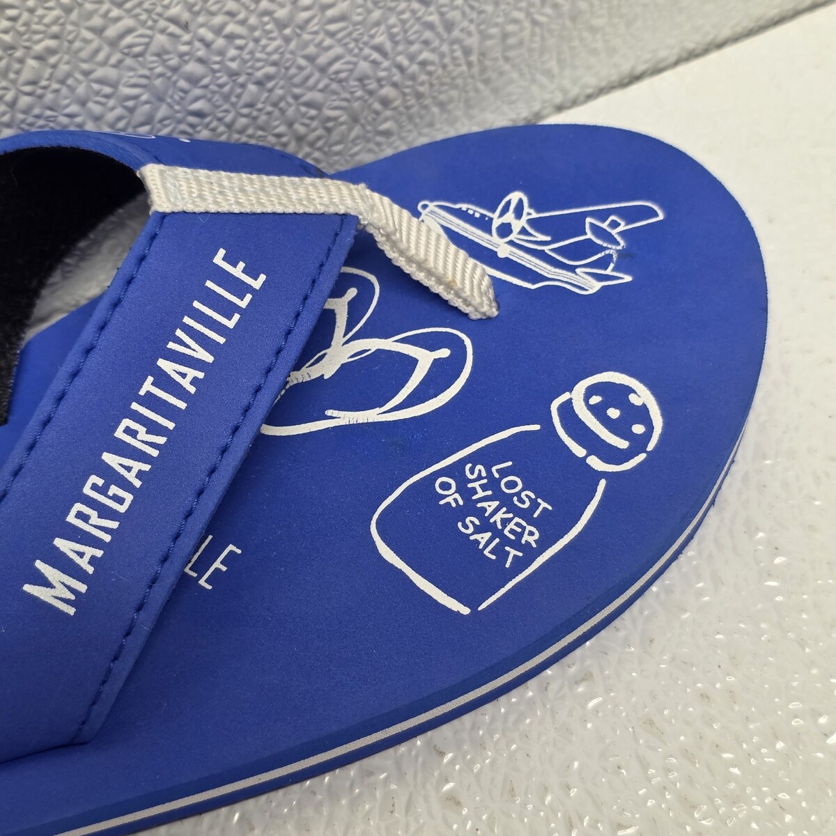 Jimmy Buffet Margaritaville Tequila Lost Shaker Of Salt Blue Womens Size 8 / 9 Flip Flops. Small defect on one strap, see images for condition. Images show actual shoes that will ship.