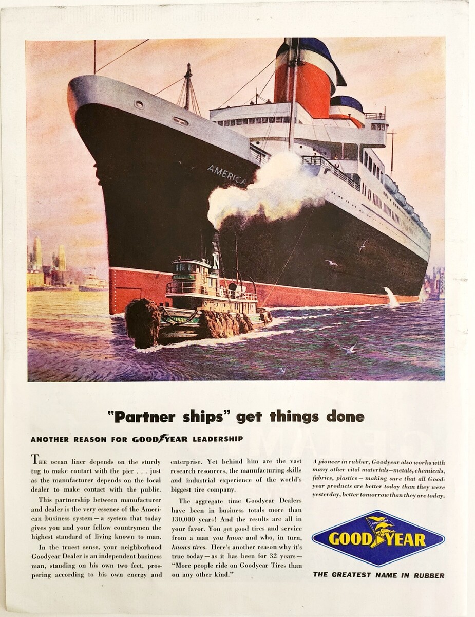 1947 Goodyear Rubber Advertisement America Cruise Ship Boats Nautical DWJJ20