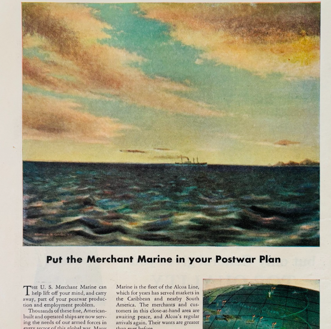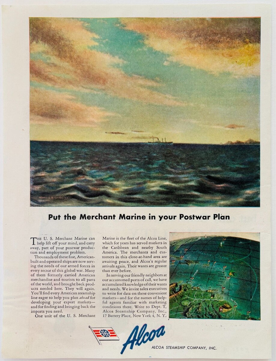 1944 Alcoa Merchant Marine Steamship Advertisement Postwar WW2 Era E90E2