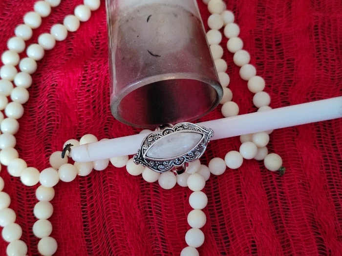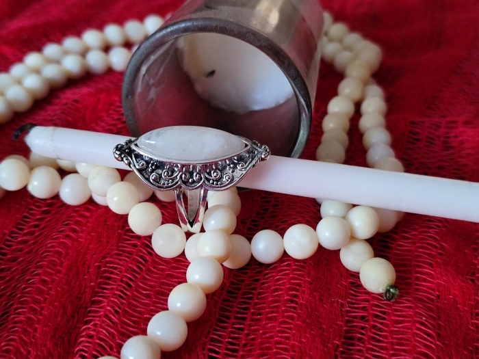 The ring itself has a beautiful white-milk stone and it can be worn or carried with you in a bag or a pocket.