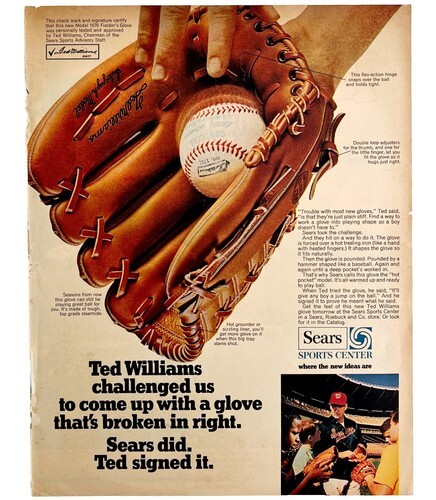 Ted Williams Sears Signature Baseball Glove 1970 Advertisement Boys Life HM1B