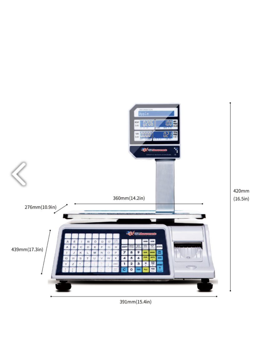 USA Measurements DL9000 is unlike many other label printing scales on the market. Our US-DL9000 has everything packed into one scale. No need to upgrade down the road, replace, or buy software. This has everything you need. Dual range capacity: 30lb 60lb, 20,000 PLU Including Ingredients Function, WiFi Ethernet Connection, and 32 Standard Label Formats 67 Custom Design Label Formats. This will fit all your needs for any business.Features:30lb/60lb Dual CapacityContinuous LabelStandard: 20,000 PLU?s include Ingredients168 Speed Keys(56 keys x 3)32 Standard Label Formats 67 Custom LabelsHigh Speed Thermal PrinterUSB network for easy firmware upgradesMultiple barcode formatsEnglish, Chinese, Korean, or Spanish CharactersMenu Code SystemXDB Software PackageIncluded ? PLU Editor ? Label Editor ? Keypad EditorCompatible with Microsoft WindowsEthernet, Wireless Networking, USB, RS-232C Built-inCLASS III ? NTEP Approved (Legal for trade)US-DL9000-Brochure Specifications: Dual Capacity Range30 lb x .01 lb 60 lb x .02 lbResolution: 1/3,000(Dual Interval)Display Type: LCD, Dot Matrix LCD with BacklightPrinting Speed (mm/sec): 95Operating Temp (F/C): 14 ~ 104/-10 ~ +40Power: AC 120V, 50/60HzPlatter Size (in/mm) (W x D): 14.3 x 11.1/364 x 281Dimensions (in/mm) (W x D x H): 15.4 x 17.3 x 21.2/391 x 439 x 541Product Weight (LB/KG): 25.5/11.5Shipping Weight (LB/KG): 28.5/12.9Warranty: 2 Year on FrameWarranty: 1 Year Electronics Resources: US-DL9000 SpecificationUS-DL9000 Owner?s ManualIP Address Set Up on US-DL9000US-DL9000 LABEL Setting SheetsUS-DL9000 Operations Speed SheetsUS-DL9000 Programming Speed SheetsTEMPLATE US-DL9000 PLU CSV FILEUS-DL9000 Span Calibration ProcedureUS-DL9000 XDB-MANAGER MENU 2020US-DL9000 Software XDBManager-US-1.0.0.7 https://www.youtube.com/watch?v=e9HP6yUySo8 thttps://www.youtube.com/watch?v=o9xWvwXJigghttps://youtu.be/MzT037FBVschttps://youtu.be/ZNfmqRp5LYU?si=rRmf7XBEtItEHxB9