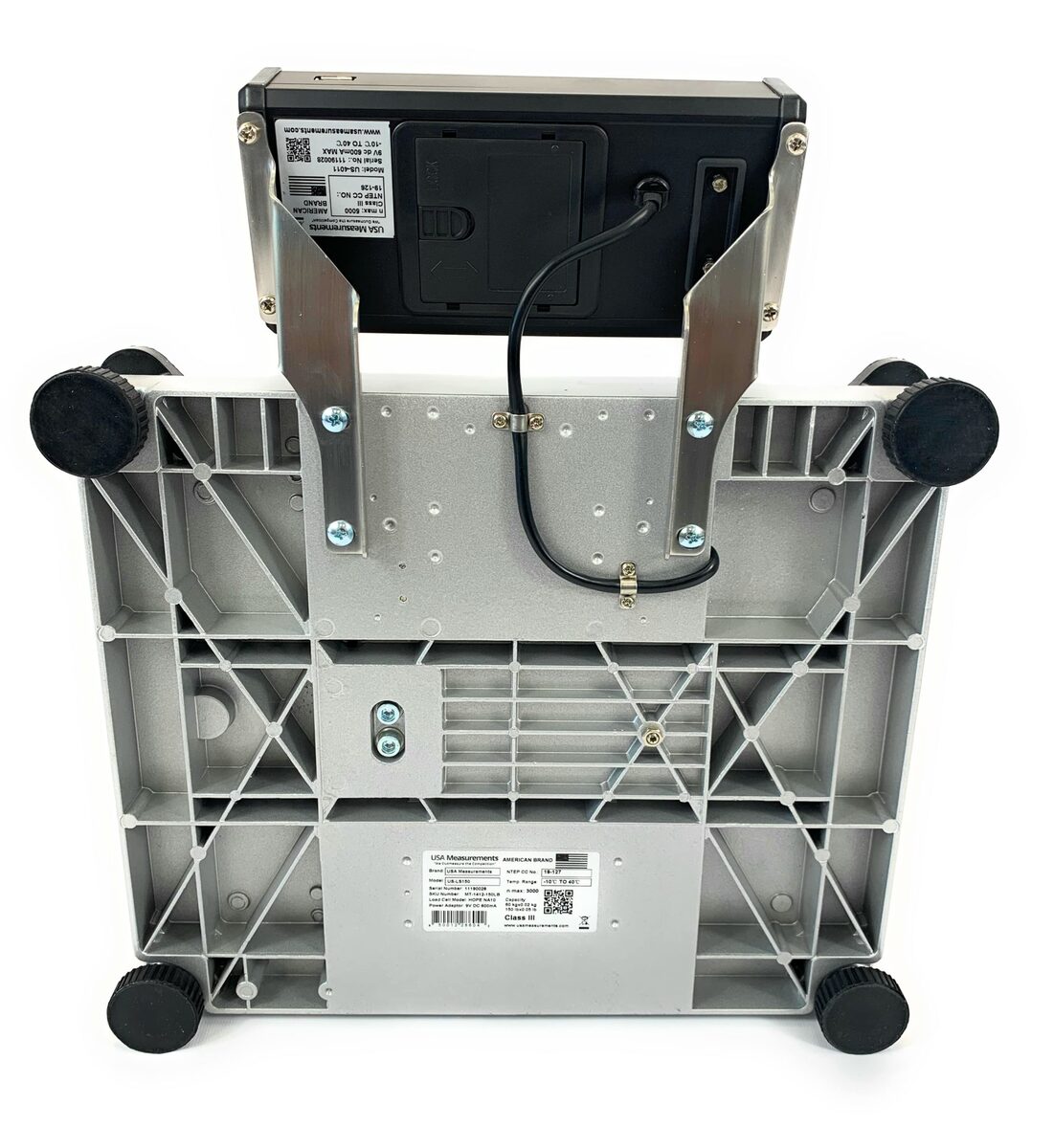 The USA Measurements scale can operate on AA batteries or the provided AC adapter. The US-LS60 shipping scale is built for heavy-duty applications, featuring 100% overload protection and arriving fully calibrated for immediate use ("Plug Weigh"). Its USB and RS-232 inputs enable seamless connections to computers, shipping software, printers, and other electronic devices. Platform Features:Capacity: 60 lb x .02 lbPlatform size: 14?x12?Stainless Steel Platform100% Safety Overload ProtectionBuilt in Leveling BubbleSpill Proof BaseLow Profile Design with Adjustable Feet2 Year Warranty on Steel FrameNTEP Approved (Legal for trade) US-4011 Features:Automatic Zero Tracking (AZT)Initial Zero Setting Mechanism (IZSM)Semi-Automatic (Push Button) ZeroKeyboard TareSemi-Automatic (Push Button) TareDC Power / Battery (6 VDC Nominal)AC Power Supply (120V AC Nominal)Power Saving Feature (Auto Shut Off)Alphanumeric DisplayGross/Net DisplayLiquid Crystal Display (LCD)Communication Ports: RS-232 and USBLinearity Calibration Points (3)1 Year Warranty on ElectronicsUnits: lb, oz, kg, g (lb/oz units for postal use only) What is include: (1) 14?x12? Platform Scale(1) US-4011 Weighing Indicator(4) Adjustable Leveling Feet(1) 110V Power Adapter(1) User Manual Common Applications: Parcel WeighingFreight and Cargo ManagementInventory ControlPackage Dimensioning and Weight VerificationPortion Control in RestaurantsIngredient Weighing for Food ProductionCheckweighing for Quality ControlFood Packaging and Labeling Resources: US-LS60 BrochureUS-4011 BrochureUS-4011 Owners ManualUS-LS30 Owners ManualCertificate of Conformance 19-127A1 WHY CHOOSE USA MEASUREMENTS? We offer a quality built product at a reasonable price. We specialize in scales and nothing else. We offer sales, service, and calibration in the largest cities throughout the United States. We stand behind our products with a 5 year warranty, 30 day return policy, and have a knowledgeable staff ready to answer any questions. We manufacture American made products, build custom scales, and offer only the best quality. Call us now: 833-286-7135 https://youtu.be/RR9h-F83N2U?si=ePd-6O0K8pkRTsZrhttps://youtu.be/P1YfDeCV5sI?si=DlFo2nUTuSL5Ds5Fhttps://youtu.be/wmvgvVe1-vo?si=2bCkyi00d3AizvzFhttps://youtu.be/O8xKog65cDo