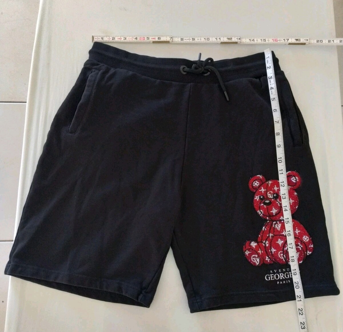 Avenue George V Paris Teddy Crystal Sweatshorts Black Streetwear Glam Size XL